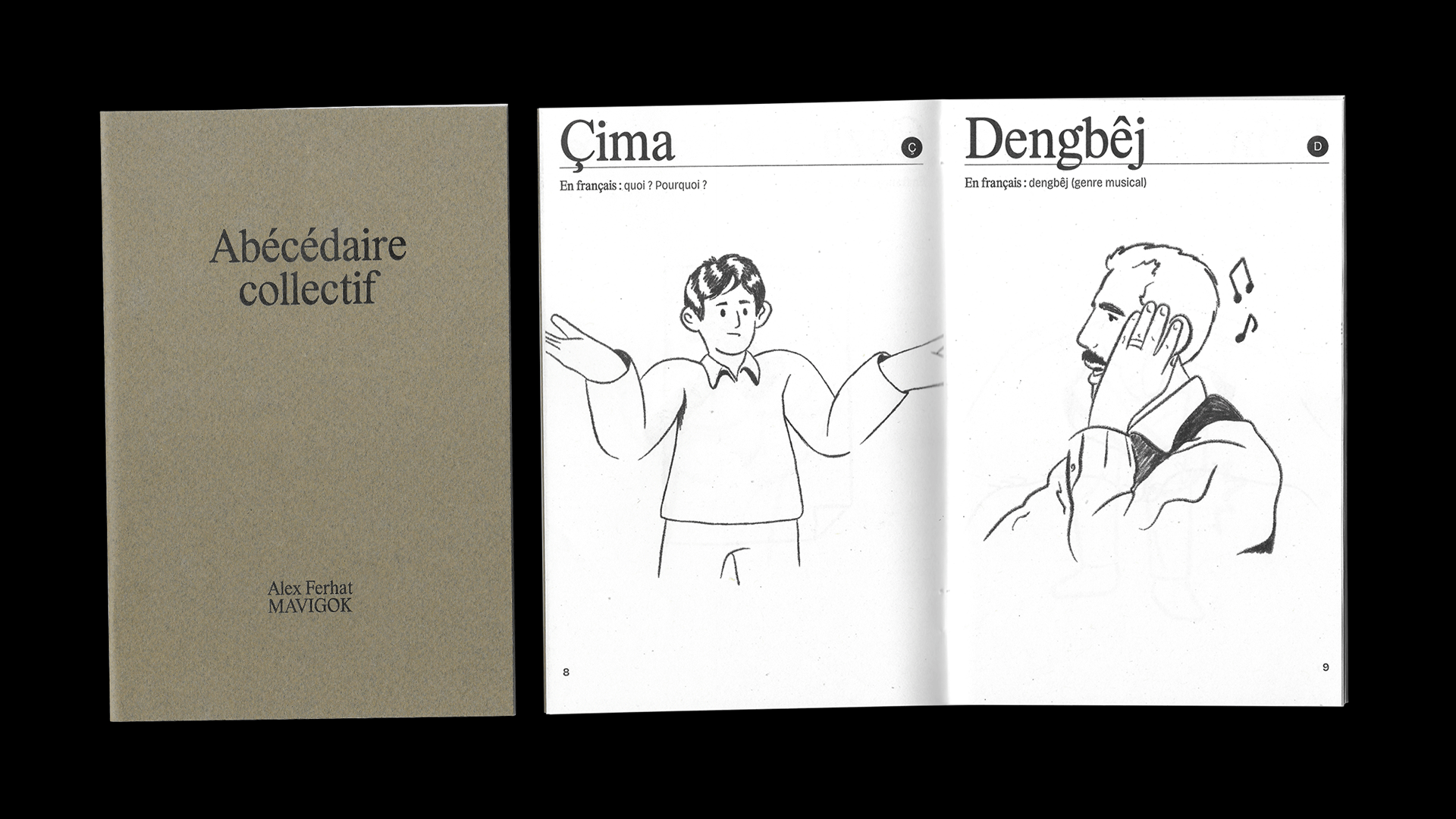 → Le format de l’abécédaire m’a semblé idéal, car c’est l’un des premiers outils pédagogiques proposés à celles et ceux qui apprennent à parler ou à découvrir une nouvelle langue. Cela m’a aussi permis de commencer mon apprentissage du kurde de manière interactive et collective.